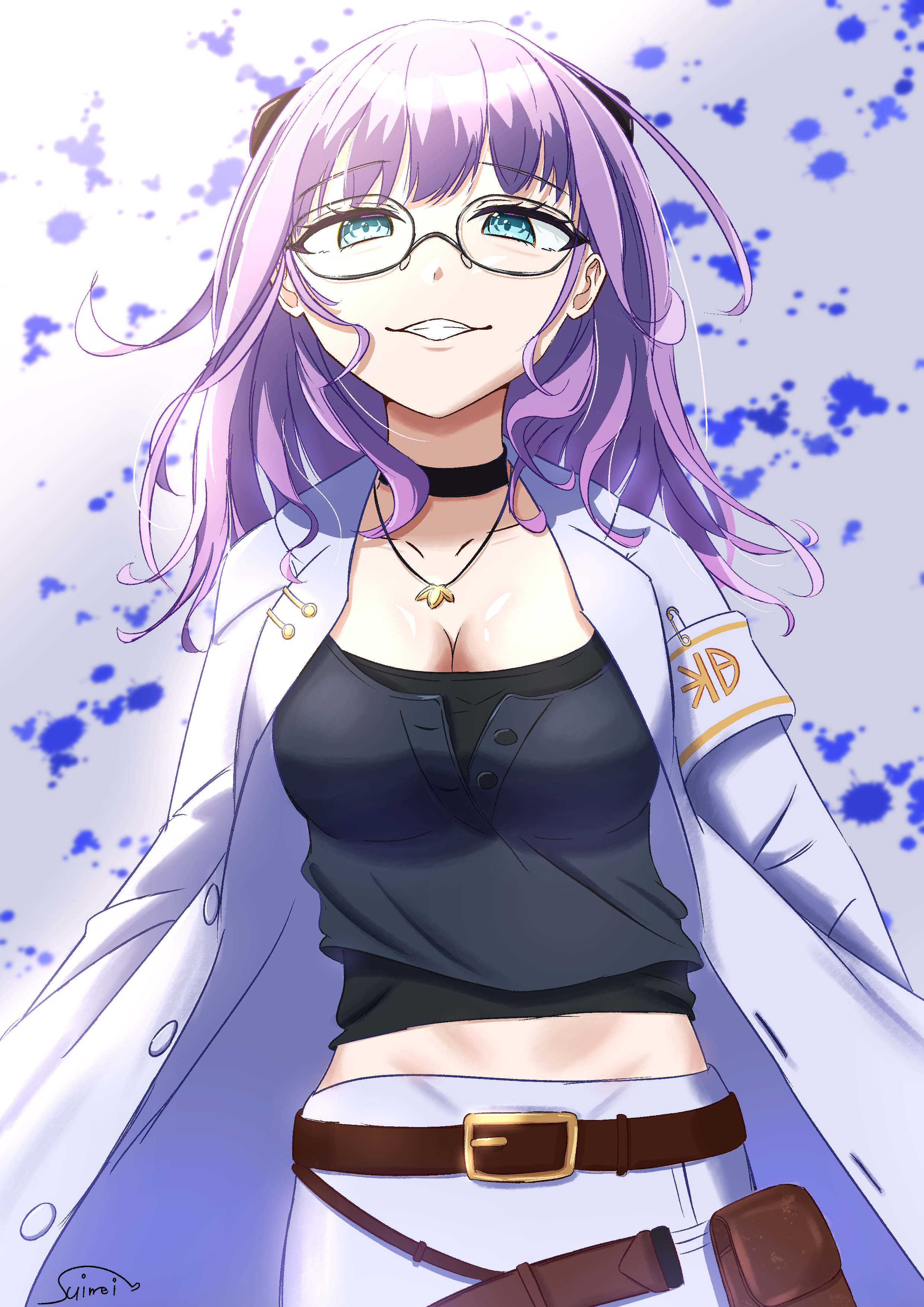 ciel (tsukihime), tsukihime, artist request, highres, official art, scan, 00s, 1girl, blue hair, character name, character profile, glasses, hands on own hips, multiple expressions, profile, school uniform, short hair, sidelocks