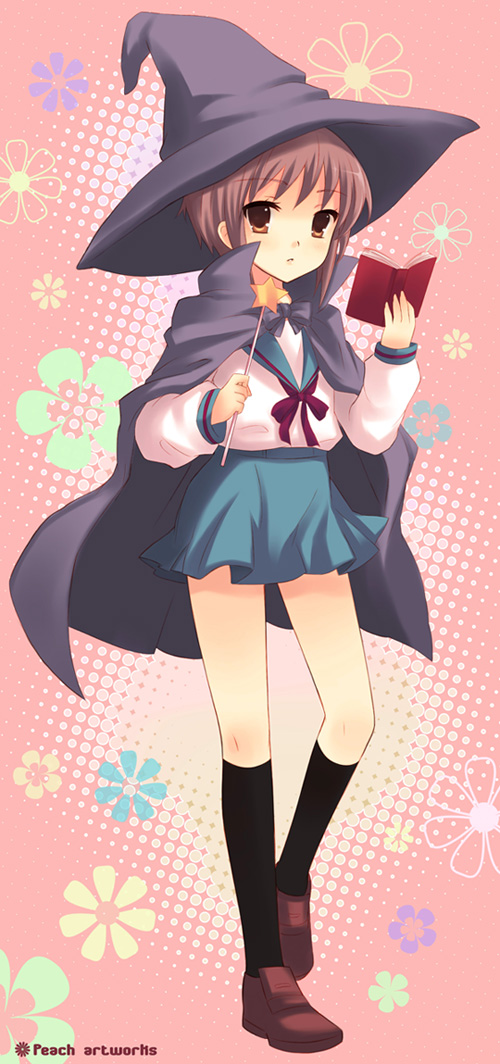 00s1girlbookbrown eyesbrown haircapefemale focusfull bodyhalftonehalftone backgroundhatschool uniformserafukusolowandwitch hat