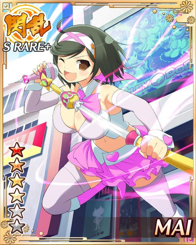 :d1girlaurablack hairborderbreastsbrown eyescard (medium)character namedetached collardetached sleevesenglish textfrilled skirtfrillshairbandhigh heelsholdingholding microphone standlarge breastslooking at viewermicrophone standmidairmidriffmusicnavelnecktieofficial alternate costumeone eye closedopen mouthpink hairbandpink necktiepink shoespink skirtpink thighhighspink vestshoesshort hairsingingskirtsmilesoloswept bangsthighhighsvest