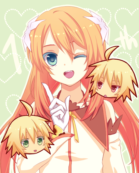00s1girl2boysblonde hairblue eyesbrown hairflowerglovesgreen eyeshair flowerhair ornamentlong hairmultiple boysone eye closedred eyessmilewink