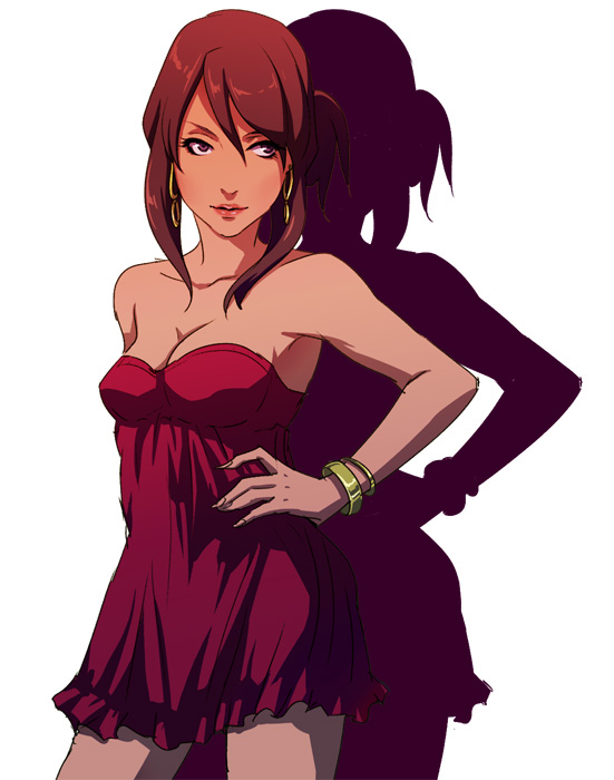 1girlarmpitsbare shouldersbraceletbrown eyesbrown hairdark skindark-skinned femaledressearringsfemale focusjewelryred dressred skirtskirtsolostraplessstrapless dresstan
