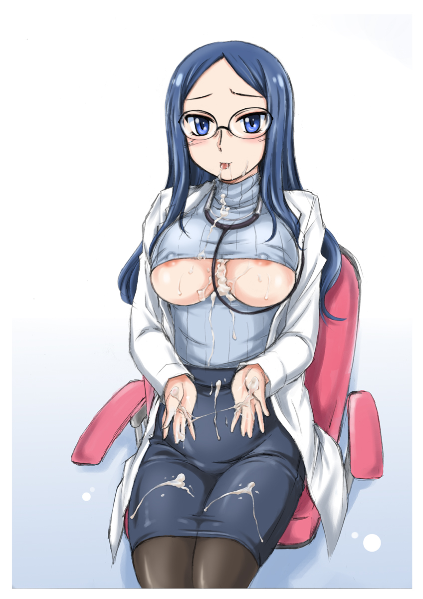 :pareolaeblue eyesblue hairbreastscumcum on bodycum on breastscum on lower bodycum on upper bodyerect nipplesfacialfemaleFlag for Deletionglasseslabcoatlarge breastspantyhosesittingskirtsolotonguetongue outunderboob