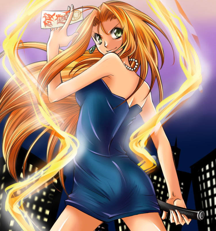 1girlbare shouldersdressearringsfemale focusgreen eyesjewelrylooking backnecklaceofudaorange hairsmilesolostraplessstrapless dresstube dress