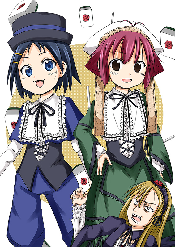 akinbo (hyouka fuyou), fuguta sazae, isono namihei, priest (dq3), chunsoft, dragon quest, dragon quest iii, eiken (studio), enix, sazae-san, bad id, bad pixiv id, 1boy, 2girls, blue eyes, blue hair, breasts, covering privates, hat, long hair, mitre, multiple girls, naked tabard, no panties, nude cover, sideboob, solo focus, tabard, very long hair
