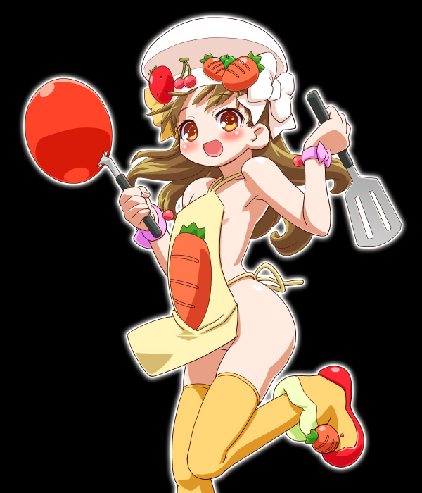 1girlapronblushbootsbrown eyesbrown hairfemale focusflat chesthatlolilong hairnaked apronopen mouthshoessolothighhighs