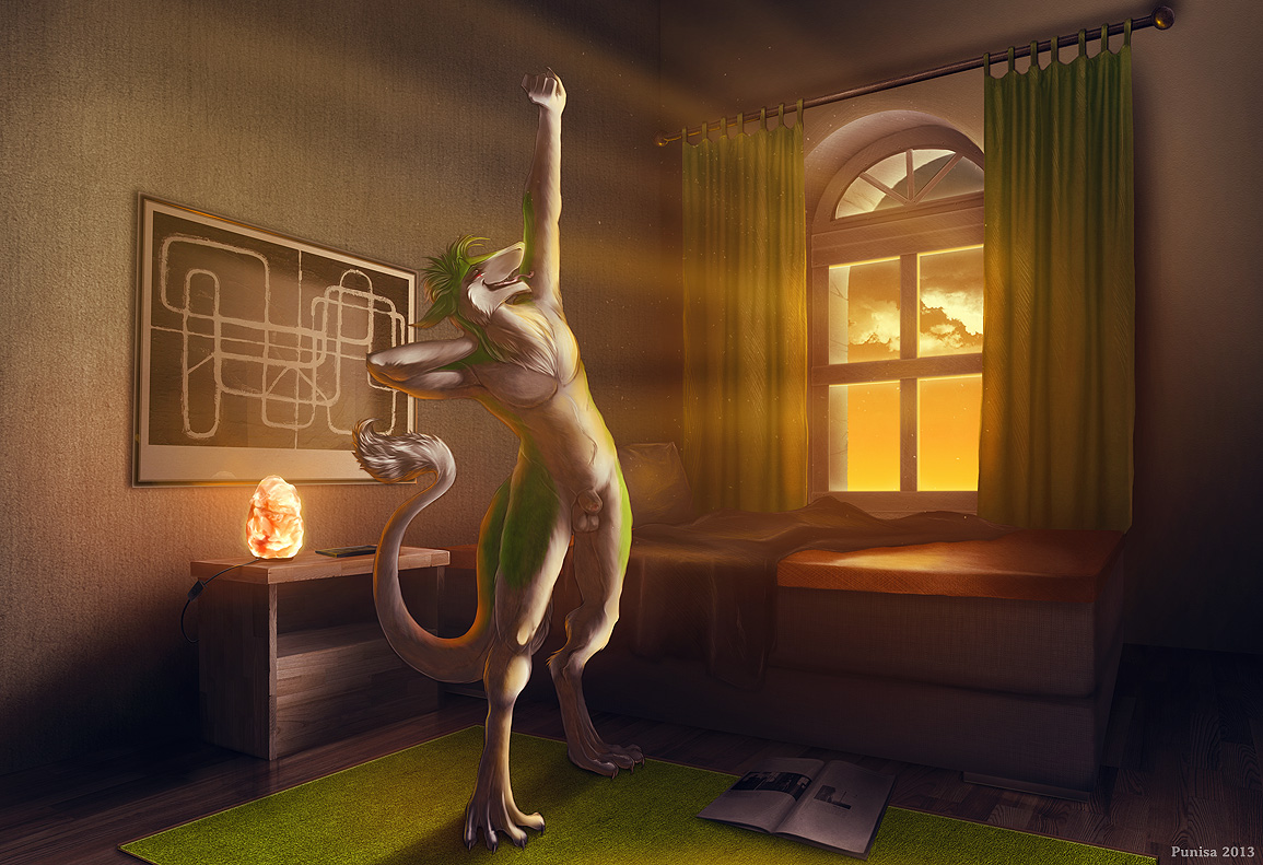 1boy4 toesarm upbarefootbedbedroomchest tuftclawsdaydetailed backgroundfistflaccidFlag for Deletionfurfurryfurry onlygreen furmalemale onlynudeopen mouthpawspenispillowroomsergalsheathskysolostandingstretchingtail tufttesticlestonguetuftwhite furwindowwood