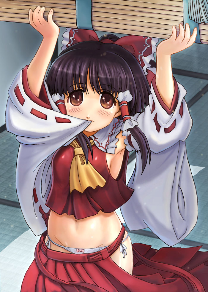 enomoto hina, hinacoco, furude rika, higurashi no naku koro ni, bad id, bad pixiv id, 00s, 1girl, ahoge, blue hair, bow, female focus, kneehighs, kneeling, long hair, pink bow, purple eyes, skirt, socks, solo, suspender skirt, suspenders