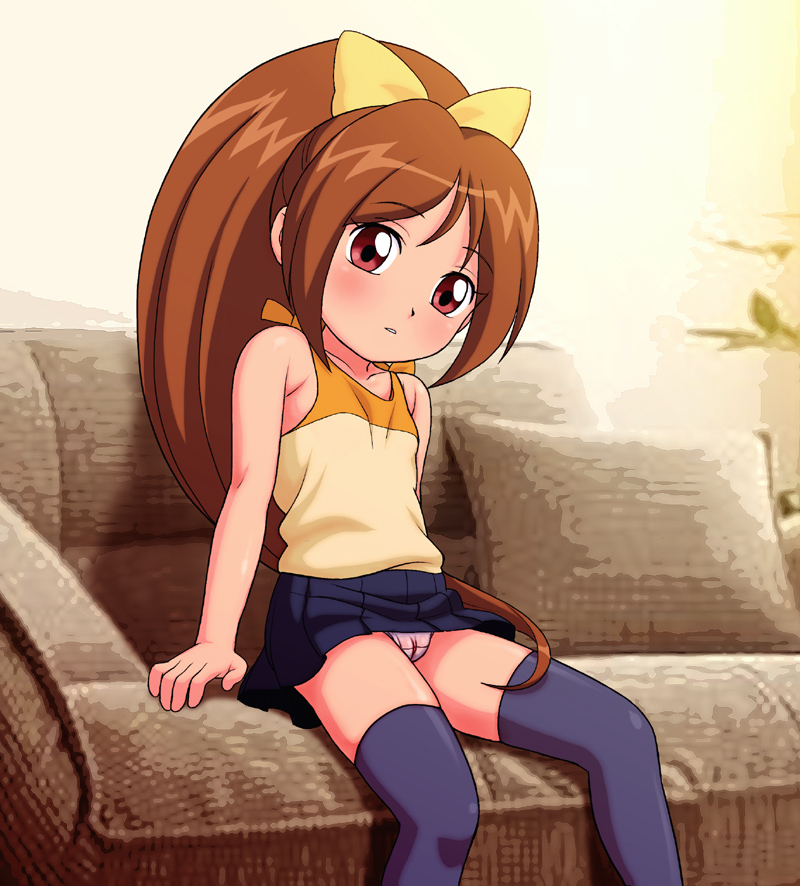 1girlbare shouldersbrown eyesbrown haircameltoefemale focushair ribbonlolilong hairminiskirtpantiespantyshotponytailred eyesribbonsittingskirtsolothighhighsunderwearupskirtvery long hair