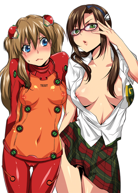 00s2girlsadjusting eyewearblue eyesblushbodysuitbreast envybreastsbreasts apartbrown haircameltoeglassesgreen eyeslarge breastslooking at breastsmecha pilot suitmultiple girlsnipple slipnipplesno braopen clothesopen shirtplaid clothesplaid skirtplugsuit (evangelion)see-through clothesshirtskirttest plugsuit (evangelion)