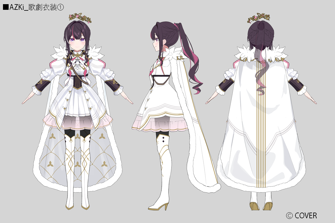 1girla-poseblack corsetbootsbowbowtiebrown haircapecenter frillsclosed mouthcolored inner haircolored shoe solescompany namecopyright noticecorsetcrowndouble-parted bangsdressfeather-trimmed capefloating crownfrilled shirt collarfrillsfull bodygold trimgrey backgroundhair between eyeshair intakeshigh heel bootshigh heelshigh ponytailholdingjacketjuliet sleeveslayered skirtlong hairlong sleeveslooking at viewerminiskirtmolemole under eyemulticolored hairmultiple viewsofficial alternate costumeofficial alternate hairstylepink hairpleated skirtponytailpuffy sleevespurple eyesreference sheetsee-through skirt layershirtsidelockssimple backgroundskirtstraight-onstreaked hairthigh bootsturnaroundvirtual youtuberwhite bootswhite bowwhite bowtiewhite capewhite dresswhite streaks