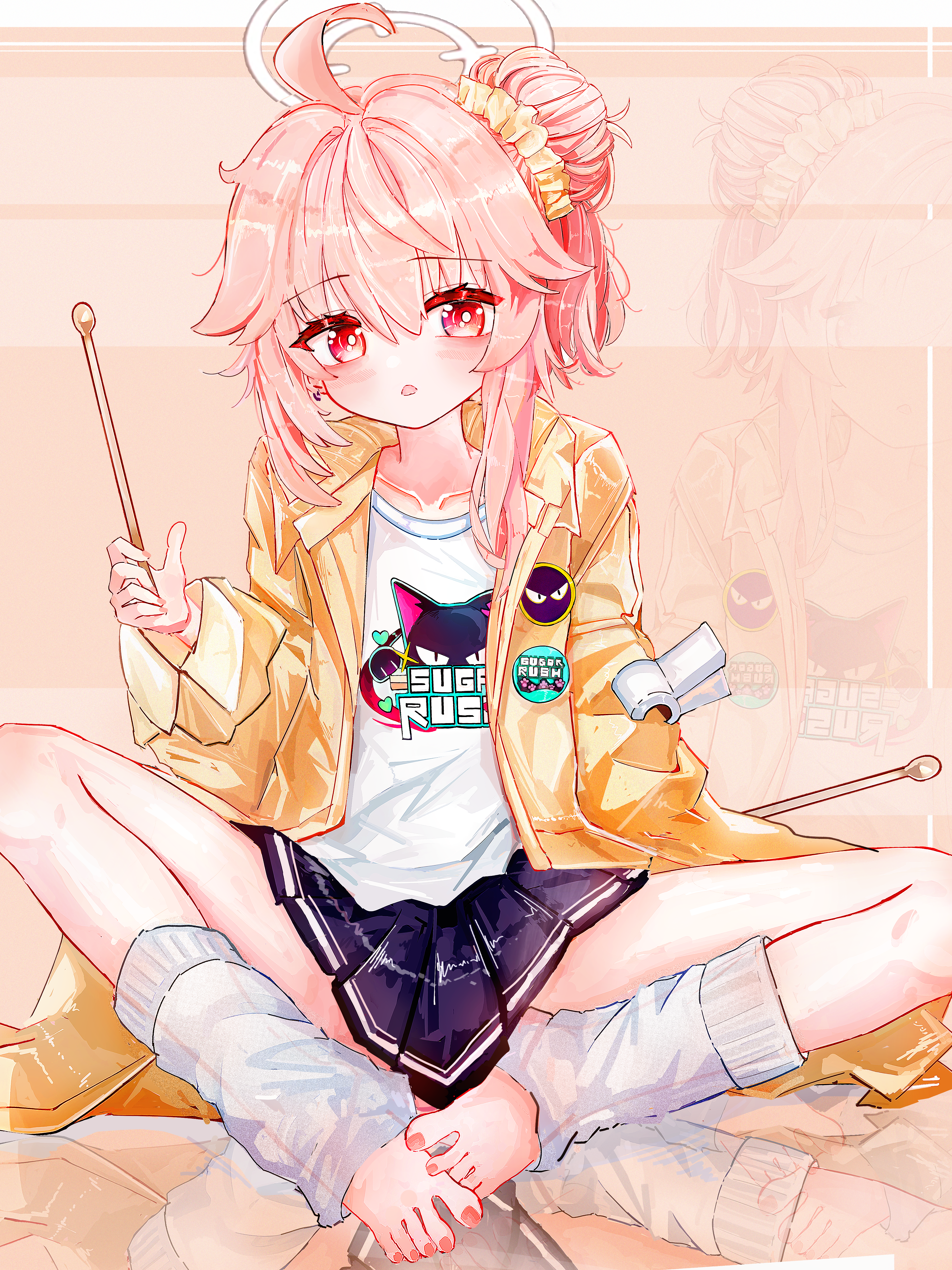 1girlhalonail polishofficial alternate costumepink hairshirtsittingskirtsolotoenail polishtoenailstoeswhite shirt