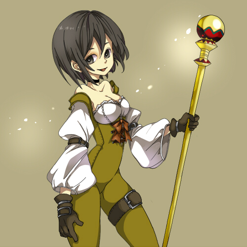 00s1girlblack eyesblack hairbreastscleavagefemale focusglovesgradient backgroundribbonshort hairsolothigh strap