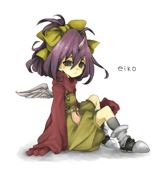 00s1girlbootsbowcharacter namechildfemale focusflat chestfull bodygrey eyeshornspurple hairribbonshort hairsingle hornsittingsolowhite backgroundwingsyellow bow