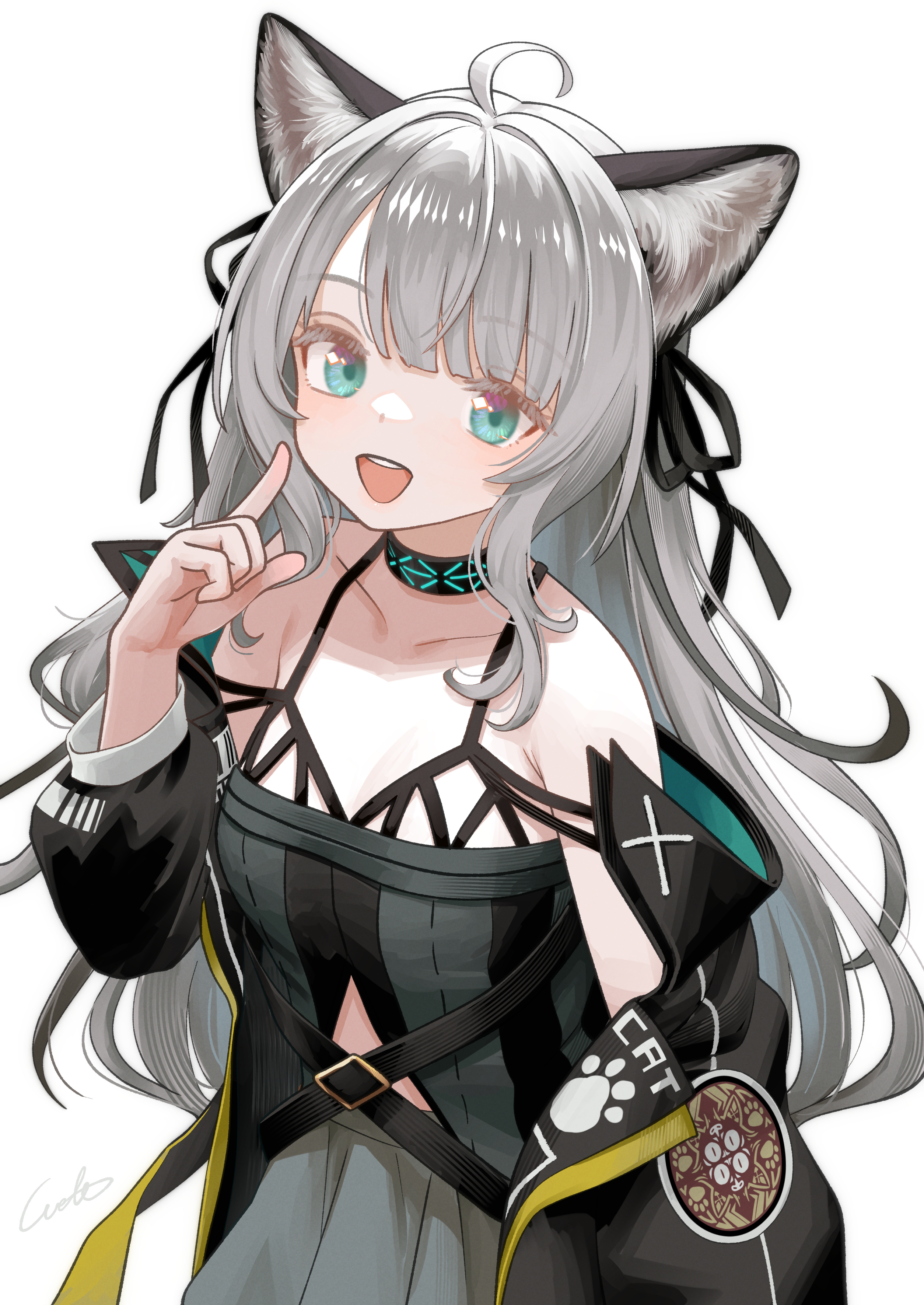 shigure asa, shuffle!, official art, 00s, 1girl, blush, bow, countdown, female focus, finger counting, green hair, open mouth, purple eyes, ribbon, school uniform, serafuku, solo, speech bubble
