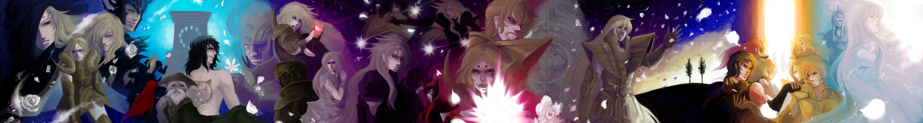 1girl6+boysarmorbattlebeardblack hairblonde hairbrazileveryonefacial hairflowerglowinggold armorhelmetlong hairmultiple boysrosewhite flowerwhite rose