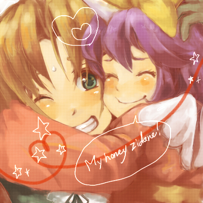 00s1boy1girlblonde hairblue hairblushbowchildenglish texthearthornshugsingle hornstar (symbol)sweatyellow bow