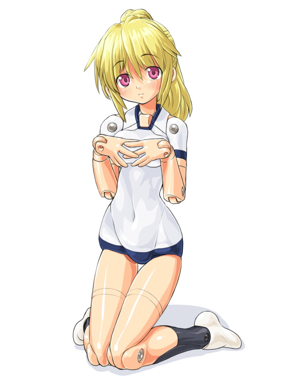 10s1girlblonde hairblushdoll jointsfemale focusgym uniformjointskneelinglong hairpink eyessockssolo