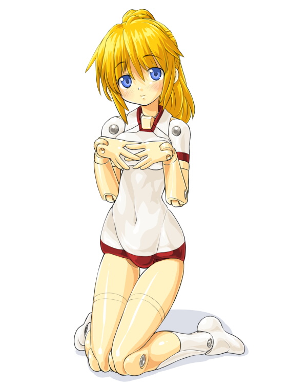 10s1girlblonde hairblue eyesblushdoll jointsfemale focusgym uniformjointskneelinglong hairsockssolo