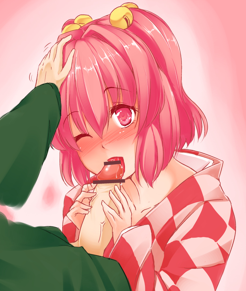 1boyblushcheckered clothingfellatiofemaleFlag for Deletionhair between eyesjapanese clothesone eye closedoralpenisred eyesred hairtied hairtwintails