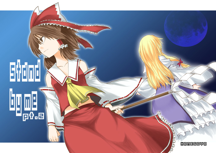 2girlsblonde hairbrown eyesbrown hairdetached sleevesfemale focusgoheijapanese clotheslong hairmikomoonmultiple girlsshort hair