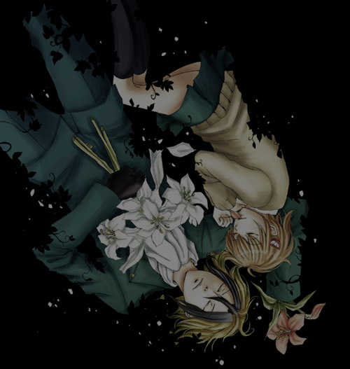 00s1boy1girlblonde haireaster lilyflowerformal clothesgloveshair ornamenthairpinlilieslily (flower)multicolored hairpetalsskirtsleepingsuitwhite flower
