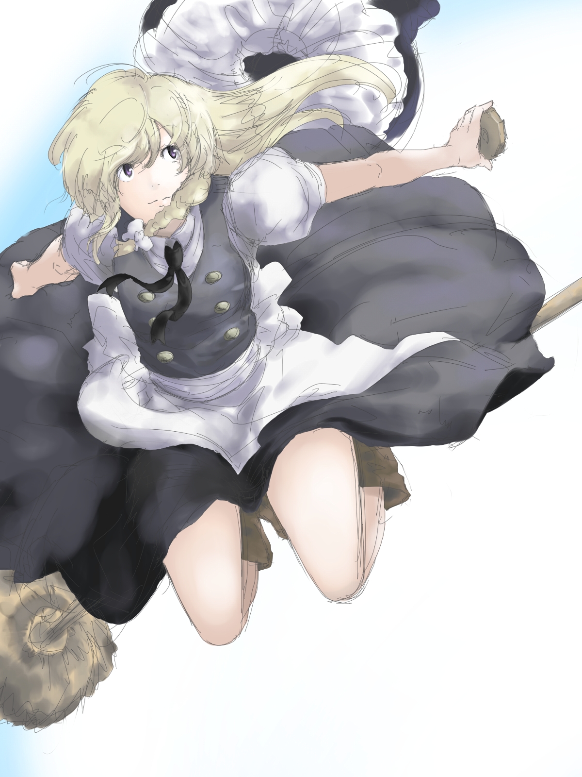 1girlblonde hairbraidbroombroom ridingdressfemale focusflyingfull bodygradient backgroundhatlong hairpurple eyesside braidsketchsolowhite backgroundwitchwitch hat