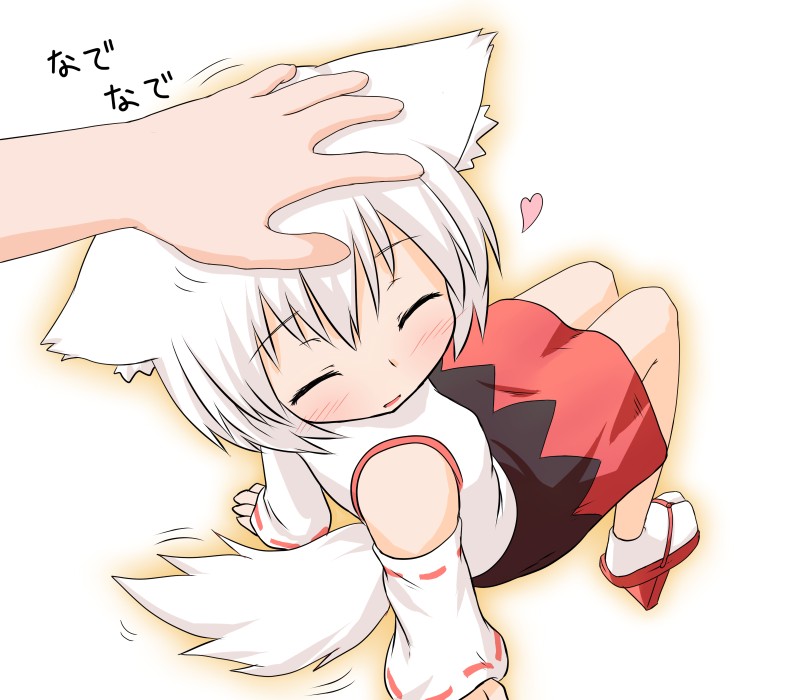 1girlanimal earsblushclosed eyesdog tailfemale focusgetahead patheadpatheartsandalssittingsmilesolo focustailtail waggingtengu-getawhite hairwolf earswolf tail