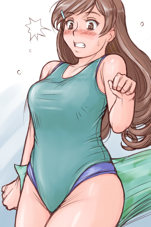 00s1girlaged upblushbreastsbrown haircompetition swimsuitcurvyfemale focusgradient backgroundlarge breastslong hairone-piece swimsuitsolosurprisedswimsuit