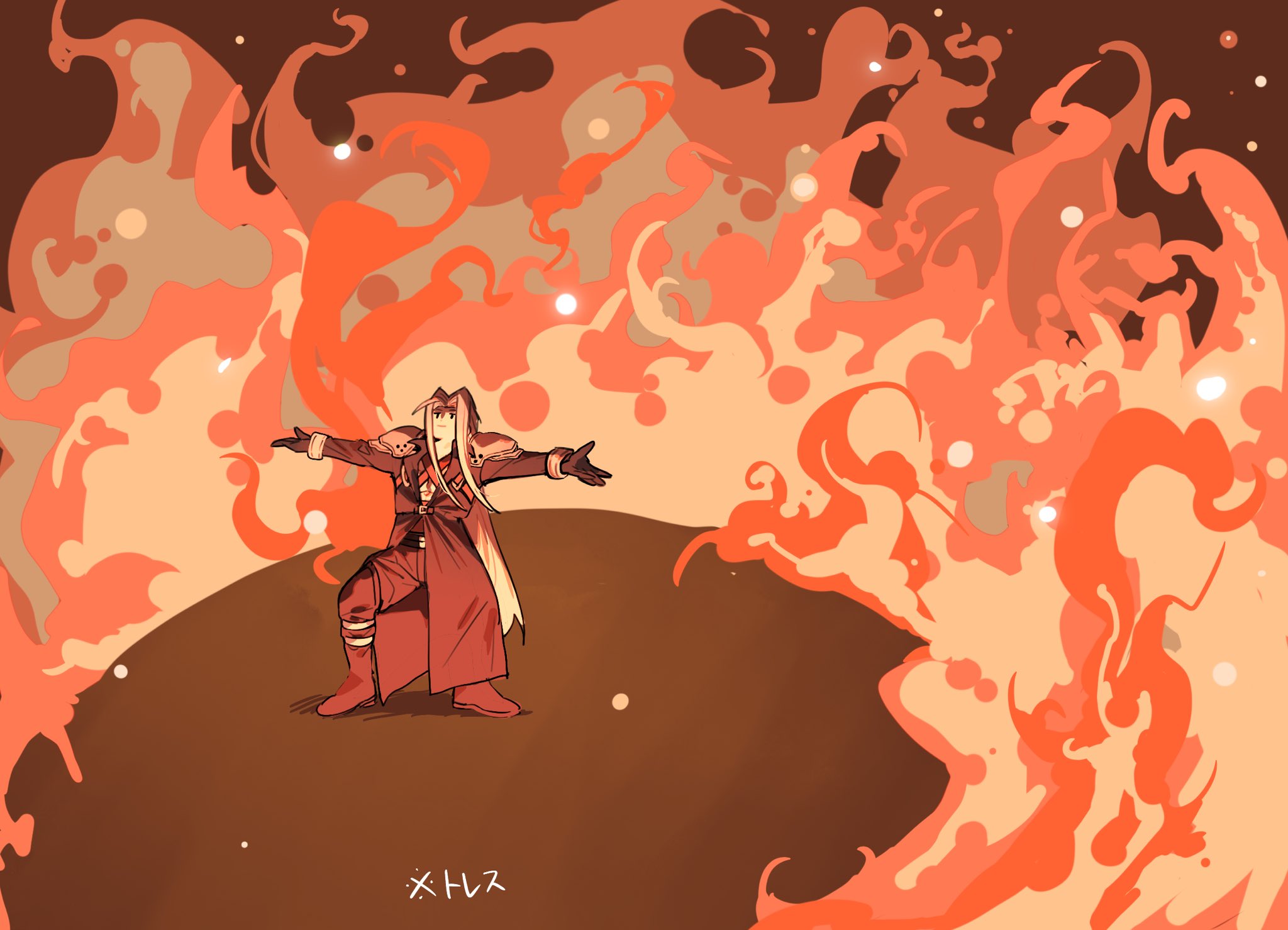 1boyarmorblack bootsblack coatblack glovesblack pantsbootschest strapclosed mouthcoatembersfirefull bodyglovesgrey hairlong bangslong hairmale focusopen handsoutstretched armspantsparted bangsshoulder armorsolostanding
