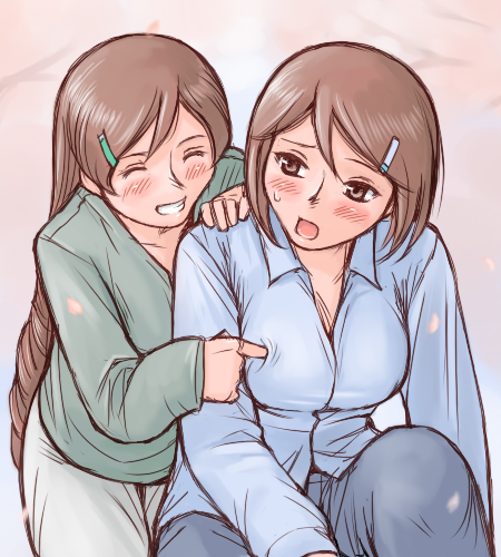 00s2girlsaged upblushbreastsbrown eyesbrown haircasualclosed eyesgrinhair ornamenthaircliplarge breastslong hairmultiple girlspokingpoking another's breastshort hairsiblingssisterssmiletwins