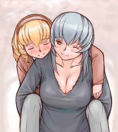 00s2girlsaged upblonde hairbreastscarryingcasualcleavageclosed eyeshairbandlarge breastsmultiple girlssleepingsmilewink