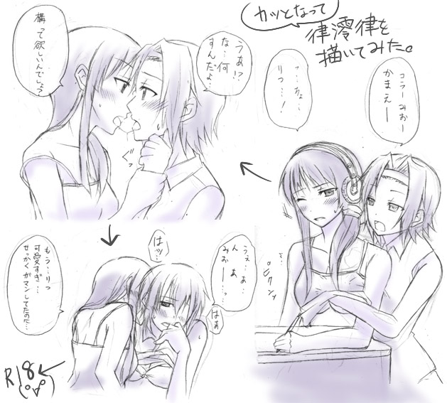 00s2girlsakg k-series headphonesblack hairblushbreastscleavageclothes liftgrabbing another's breastgropinghairbandheadbandheadphoneskisslong hairmonochromemultiple girlsone eye closedpurple themesalivasaliva trailshirt liftshort hairsmall breaststonguewinkyuri