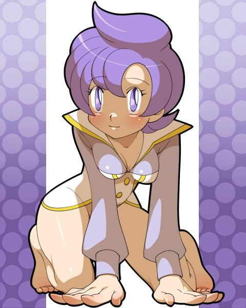 00s1girlall foursbarefootbent overblushbottomlessfemale focusfrontier brainkneelingpurple eyespurple hairshort hairsolo