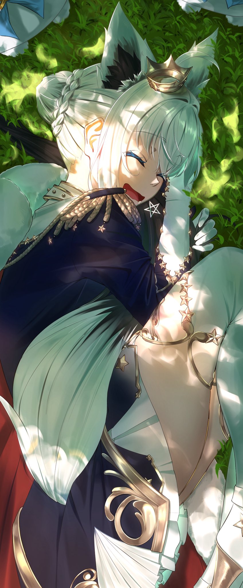 1girlahogeanimal ear fluffanimal earsblack jacketbootsbraidbun with braided baseclosed eyescrowndaichi ldsdappled sunlightepaulettesfox earsfox girlfox tailfrom sidegloveshair bunhigh heel bootshigh heelshugging own tailhugging tailjacketmilitary jacketmini crownofficial alternate costumeofficial alternate hair lengthofficial alternate hairstyleopen mouthpentagramshirtshort hairsingle hair bunsolosunlighttailthigh bootstilted headwearvirtual youtuberwhite bootswhite gloveswhite hairwhite shirt
