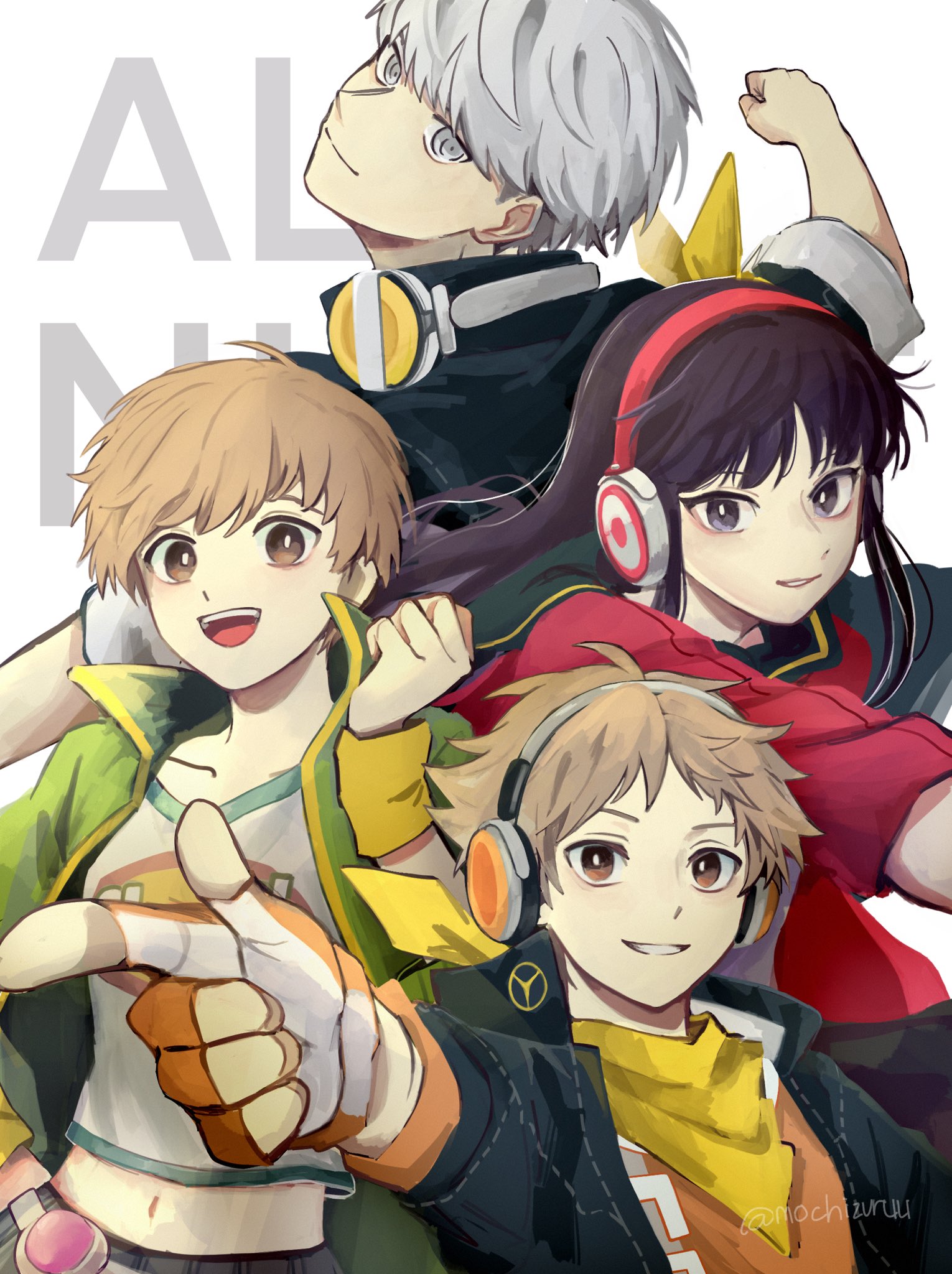 2boys2girlsbandanabandana around armbandana around neckblack hairblack jacketblack sailor collarblack skirtbrown eyesbrown hairclosed mouthfinger gunfingerless glovesglovesgreen jacketgrey eyesgrey hairheadphonesheadphones around neckjacketlong hairlooking at viewermidriff peekmochizuruumultiple boysmultiple girlsnavelofficial alternate costumeopen clothesopen jacketopen mouthorange shirtparted lipspointingred shirtsailor collarschool uniformshirtshort hairskirtupper bodywristbandyasogami school uniformyellow bandana