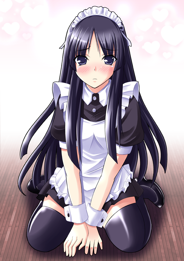 00s1girlalternate costumeblack eyesblack hairblunt bangsblushenmaidedfemale focusfull bodyhathime cutkneelinglong hairmaidmini hatmini top hatsolotearsthighhighstop hatwrist cuffszettai ryouiki