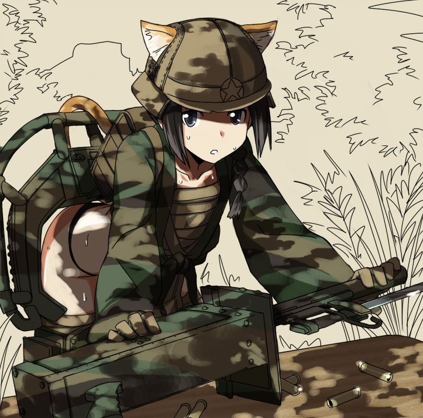 1girlbayonetblue eyesbottomlessfemale focushelmetmecha musumemilitarymilitary uniformmilitary vehiclemotor vehiclesolosweattailtankweapon