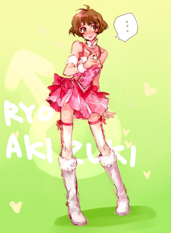 00s1boyantenna hairbare shouldersblushbrown eyesbrown haircrosscrossdressingcrossdressing (mtf)cute & girly (idolmaster)full bodyjewelrymale focusnecklaceopen mouthshort hairsmilesolothighhighstrap
