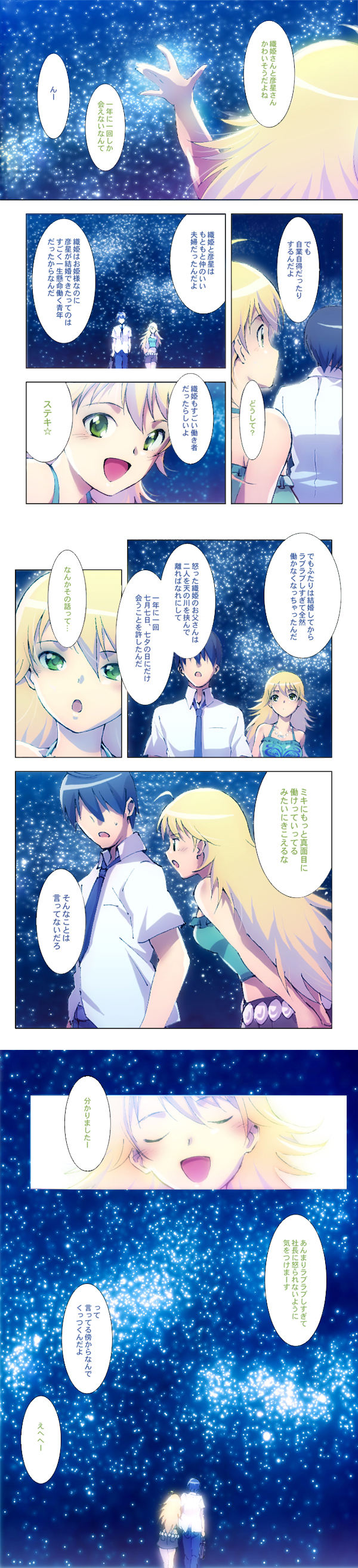 00s1boy1girlblonde hairclosed eyescomiccouplegreen eyesheteronightnight skyopen mouthoutstretched armoutstretched handreachingskysmile