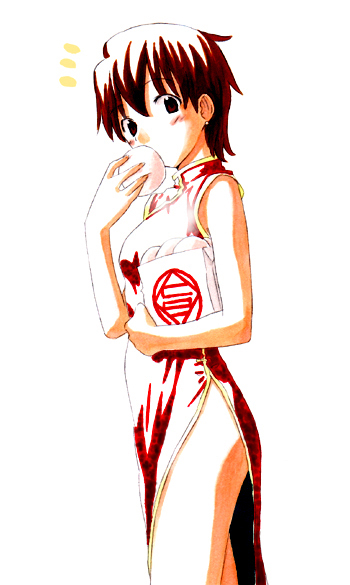 00s1girlbrown hairchina dresschinese clothesdresseatingfemale focusfoodshort hairsolosteamed bun