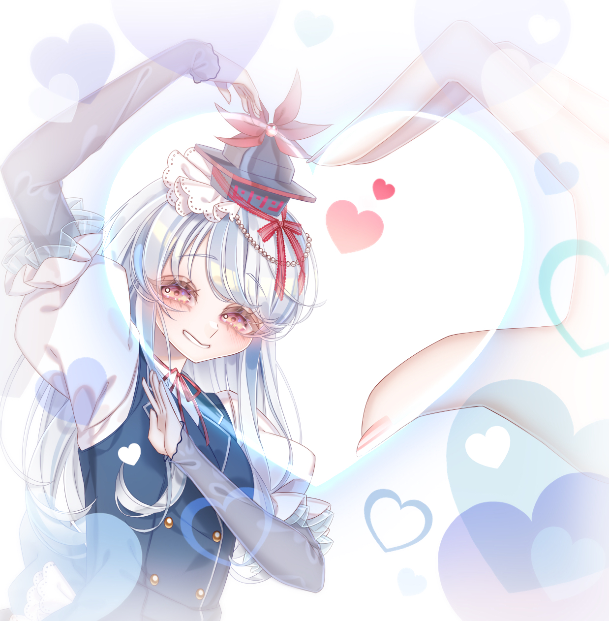 1girl1otherblue dressblue hairblushbuttonsdouble-breasteddressfingernailsforced perspectiveheartheart armsheart arms duoheart handsheart hands duolooking at viewerneck ribbonperspectivepovpov handsred ribbonribbonsee-through clothessee-through sleevesshirtsmilewhite backgroundwhite shirt