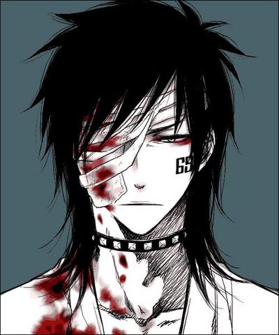 00s1boybandage over one eyebandagesblack hairbloodblood on clothescollarcolored skinmale focussimple backgroundsolotattooupper bodywhite skin