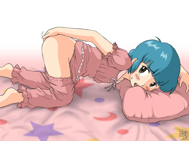 1girlbedbent overblack eyesblue hairfemale focusfemale masturbationfingeringlolimasturbationno pantiesoldschoolpajamaspajamas pullpillowretro artstyleshort hairsolotop-down bottom-upvery short hair