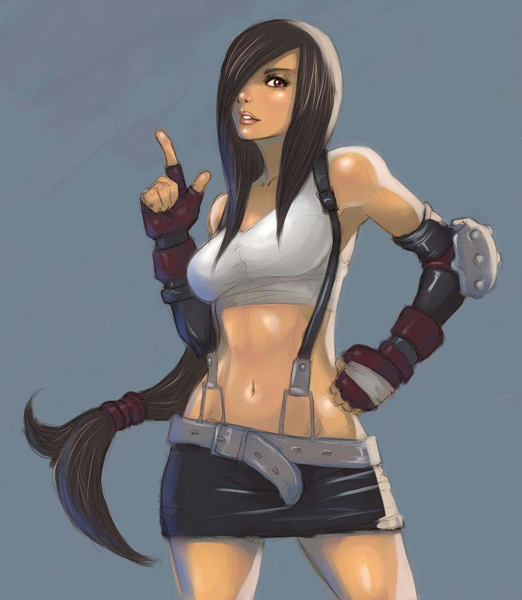 1990s (style)1girlarmpitsbare shouldersbeltbreastselbow padseyelashesfemale focusfinger gunfingerless glovesgloveshair over one eyelipslong hairlow-tied long hairmidriffminiskirtnavelpencil skirtretro artstyleshirtsimple backgroundskirtsolosuspender skirtsuspenderstank toptaut clothestaut shirtvery long hair