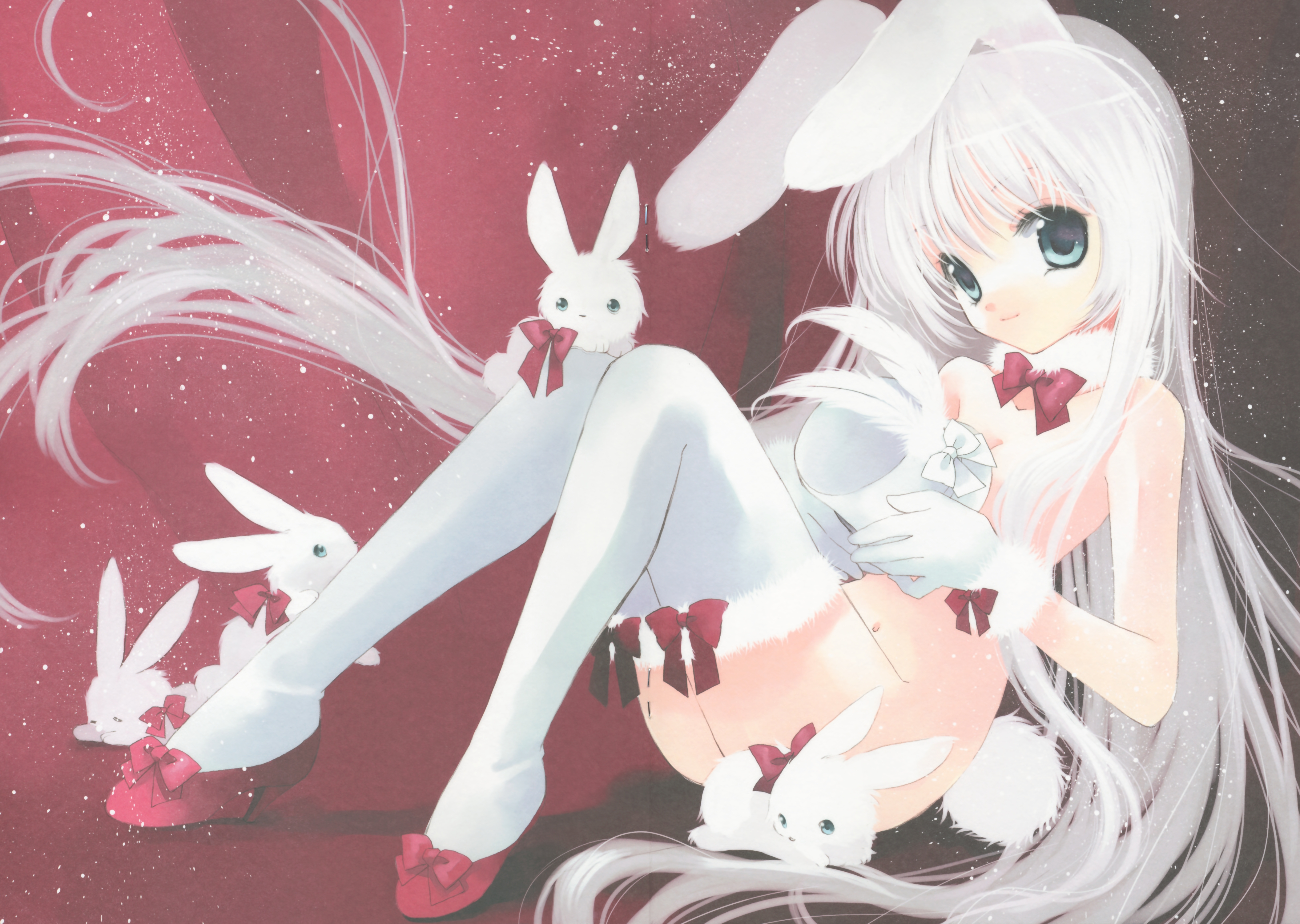 animal earsaqua eyesbowfeathersflat chesthigh heelslolilong hairnuderabbitrabbit earsrabbit tailshoessittingsolotailthighhighstwintailsvery long hairwhite hairwhite thighhighs