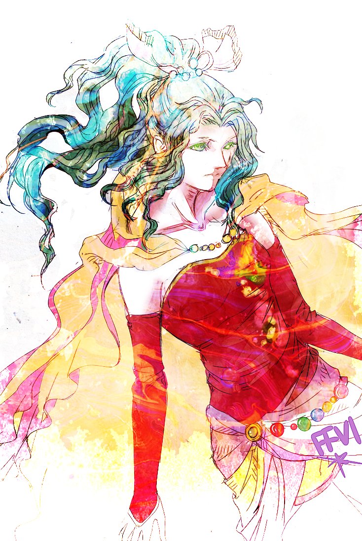 1girlbreastscapeclosed mouthcopyright namedetached sleevesdressgreen hairhair ribbonlong hairmedium breastsparted bangsponytailred dressred sleevesribbonsolostraplessstrapless dresstube dresswaist capewavy hairwhite backgroundyellow cape