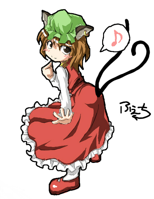 1girlanimal earsbrown eyesbrown haircat earscat girlcat tailearringsfemale focushatjewelrylooking backmultiple tailsmusical notequavershort hairsolospeech bubblespoken musical notetail