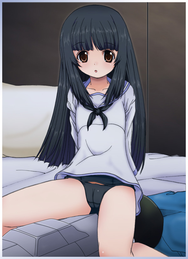 00s1girlbedblack hairbrown eyescameltoefemale focusflat chestlolilong hairno pantsone-piece swimsuitschool swimsuitschool swimsuit flapschool uniformsittingsoloswimsuitswimsuit under clothes