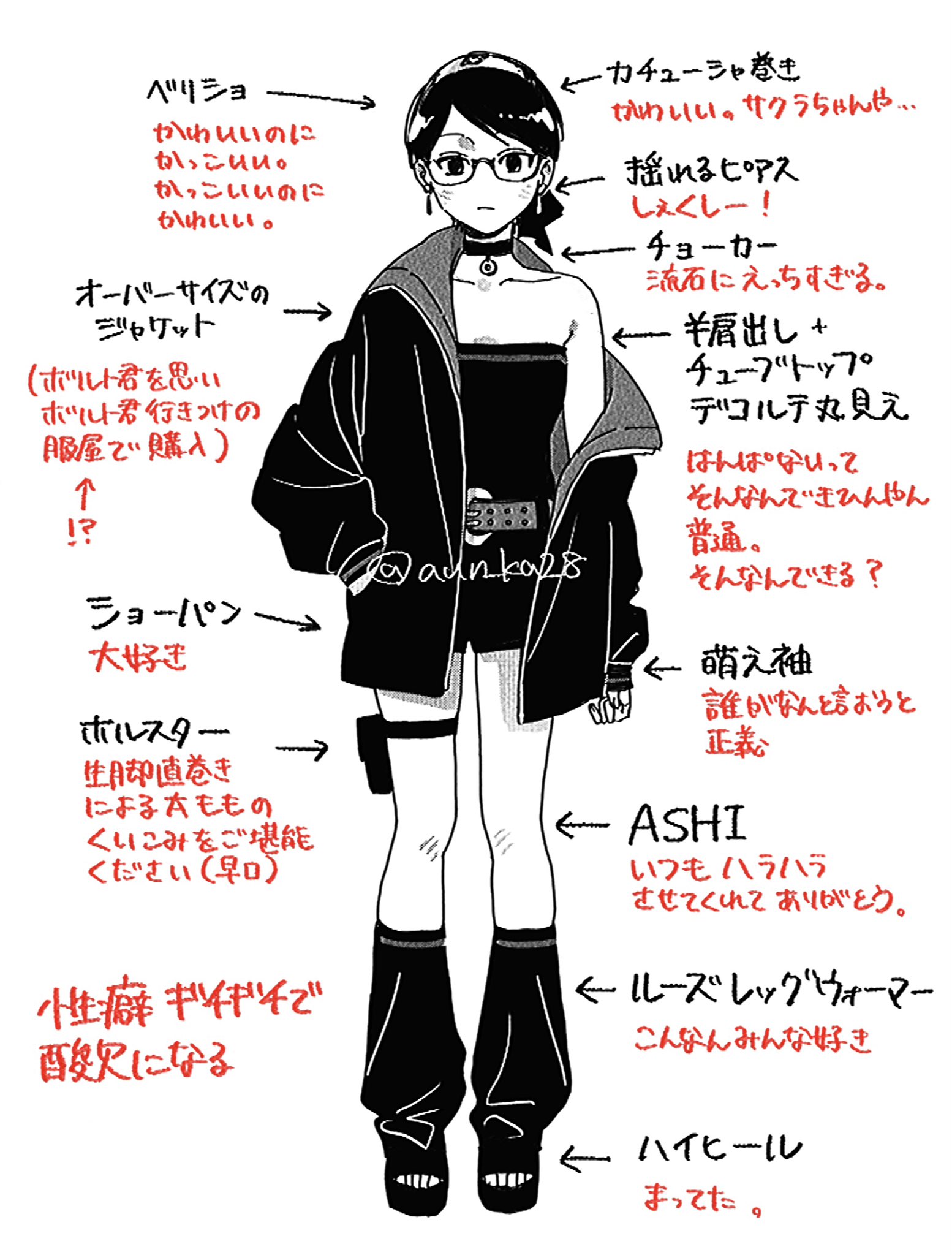 1girlbare shouldersbeltbreastschokercleavageearringsexpressionlessforehead protectorfull bodyglassesgreyscalehairbandhand in pocketjacketjewelryloose socksmonochromeoff shoulderpointing out the detailspouchrompersandalsshort hairsleeves past wristssmall breastssockssolostrapless romperthigh pouch