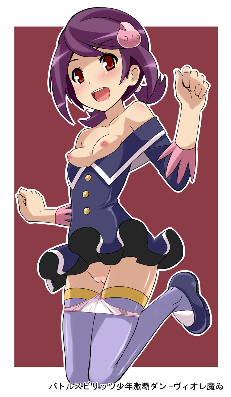 :dbare shouldersblushborderbreastsbreasts outsidecharacter namecopyright namedressdress pullfemaleFlag for Deletiongrey legwearhair ornamenthair tiehappyjumpinglow twintailsnipplesopen mouthoutlineoutside borderpantiespanty pullpurple hairpussyred eyesshoesshort hairshort twintailssmilesolothighhighstied hairtwintailsuncensored